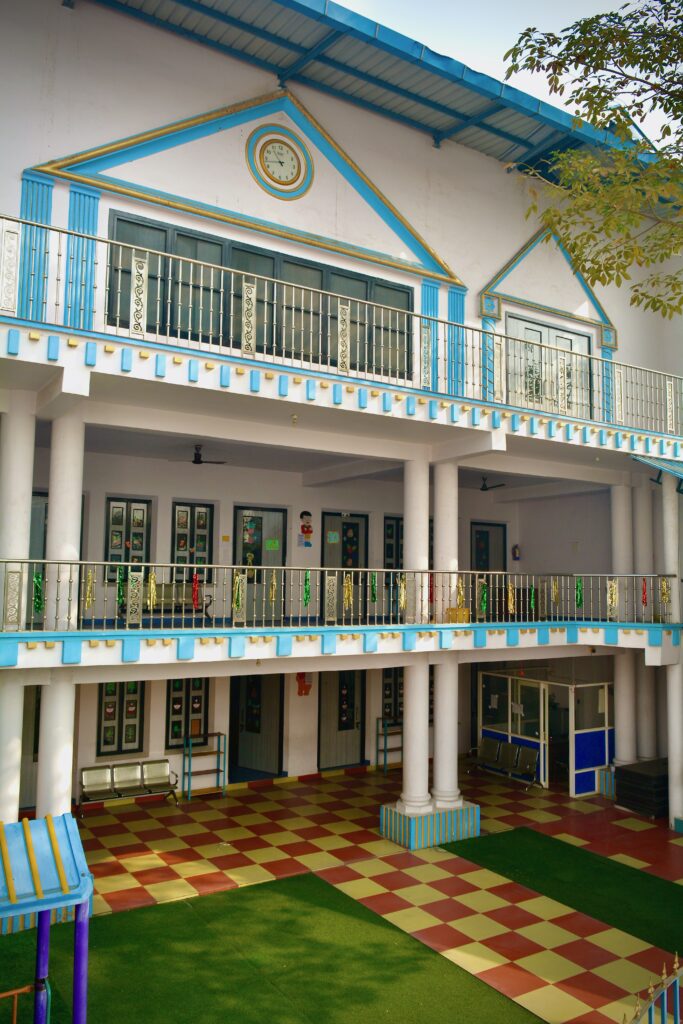 ence the name ‘Farmland’. The branch has its own cricket field, play ground, basketball, tennis, volleyball and badminton courts. The scenic view of fields and the serene atmosphere creates a very conducive atmosphere for learning. Classes XI and XII will be started in this School in the very near future.